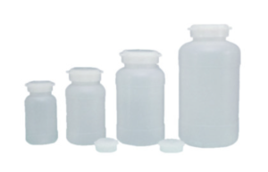 Frasco cilíndrico en polietileno de color natural. Con los orificios del tapón y la anilla del cuerpo, permite sellar el frasco mediante alambre. Los frascos se suministran sin roscar. Cuerpo de PE y tapa de PP.